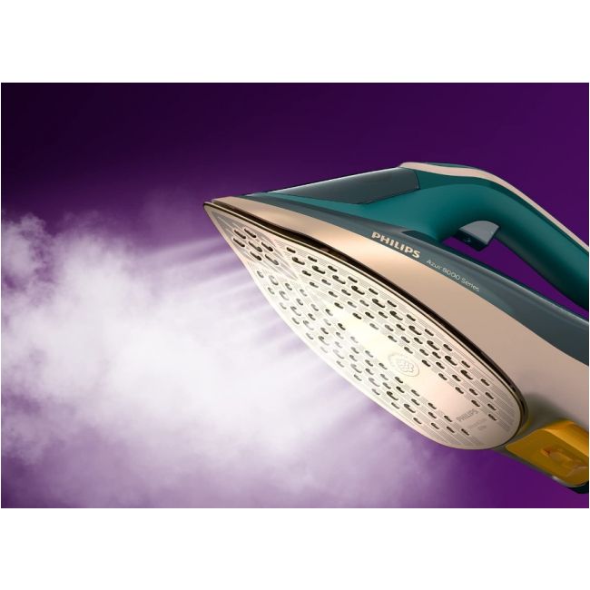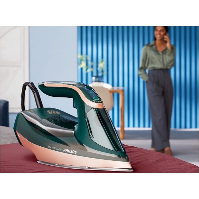 Nasza nowa seria Philips Azur 8000 zapewnia idealne prasowanie. Dzięki silnemu strumieniowi pary 260 g poradzi sobie szybko nawet z najtrudniejszymi zagnieceniami. Moc 3000 W sprawia, że żelazko szybko się nagrzewa, a silny ciągły strumień pary gwarantuje doskonałe rezultaty prasowania.