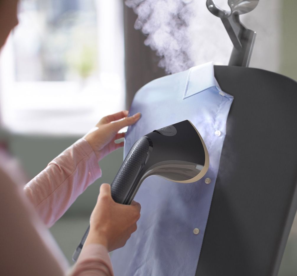 Optymalne wymiary: inteligentna konstrukcja steamera stojącego nie zajmuje wiele miejsca i eliminuje problemy z przechowywaniem.