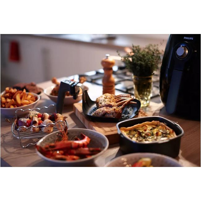 Maksymalnie zwiększ powierzchnię gotowania urządzenia wielofunkcyjnego Airfryer za pomocą akcesorium rozdzielającego warstwy. Piecz, grilluj lub smaż pyszne burgery, skrzydełka kurczaka, ryby i nie tylko w łatwy, szybki i zdrowy sposób. Aby wprowadzić więcej różnorodności, możesz przygotować warzywne lub mięsne szaszłyki, korzystając ze szpikulców.