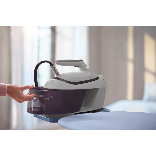 Wbudowany system usuwania kamienia Smart Calc Clean ułatwia konserwację żelazka z generatorem pary. W odpowiednim momencie przypomina on o konieczności odkamienienia. Co więcej, jest wyposażony w pojemnik, dzięki któremu usuwanie kamienia jest łatwe i bezpieczne. System służy do wielokrotnego użytku, co gwarantuje oszczędność — nie trzeba kupować dodatkowych wkładów.