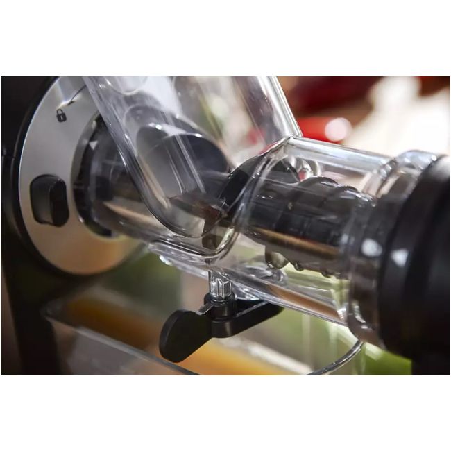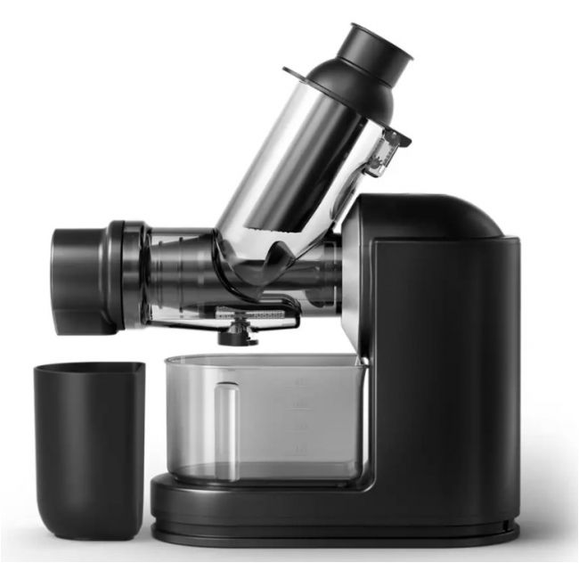 Dzięki wyjątkowej konstrukcji nową wyciskarkę do soku można szybko złożyć i rozpocząć użytkowanie. Pozwala ona również na łatwe rozłożenie i szybkie wyczyszczenie. Wszystkie odłączane elementy można bezpiecznie umyć w zmywarce, co jeszcze bardziej ułatwia czyszczenie po codziennym wyciskaniu soku.