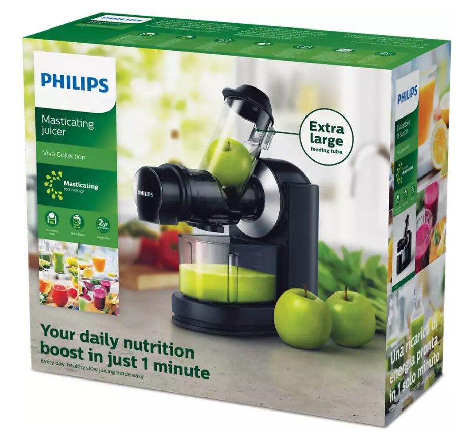 Pij codziennie porcję zdrowego soku. Wyciskarka wolnoobrotowa firmy Philips to najlepsze urządzenie do przygotowywania soków. Jest wyposażona w bardzo duży otwór na produkty pozwalający wyciskać całe owoce, warzywa i liście. Można ją wypłukać do czysta w zaledwie 90 sekund.