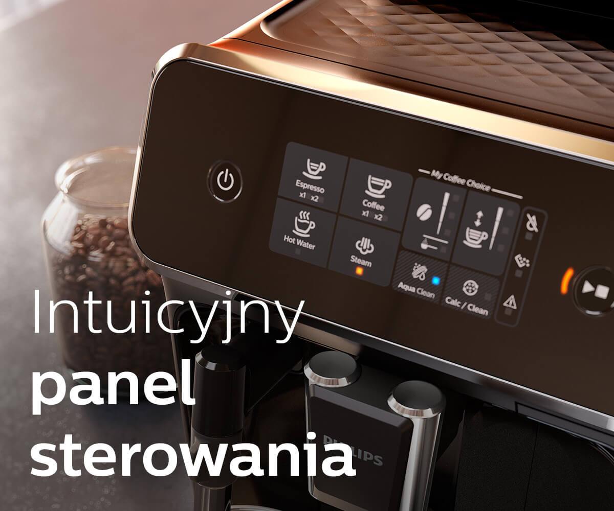 Ekspres Philips 2200 posiada czytelny, dotykowy panel sterowania, który sprawia, że obsługa urządzenia jest wyjątkowo prosta. Wystarczy wybrać rodzaj kawy i dotknąć odpowiednią ikonkę, a aromatyczny napój zostanie błyskawicznie zaparzony!