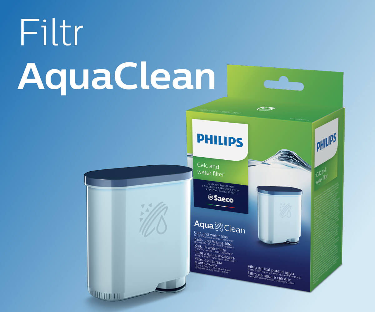 Przy parzeniu kawy, jakość wody jest równie ważna, jak ziarna. Opatentowany filtr AquaClean usuwa wapń z wody oraz zapobiega osadzaniu się kamienia w ekspresie. Filtr AquaClean pozwoli Ci przygotować nawet 5000* filiżanek kawy, bez konieczności odkamieniania urządzenia.