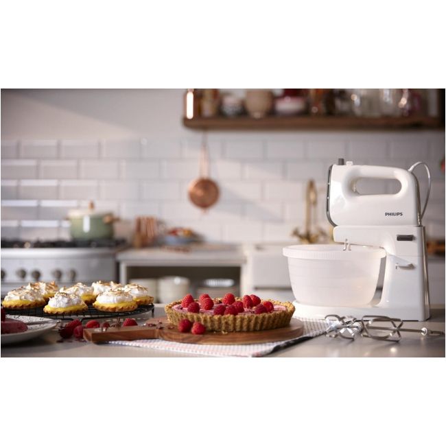 Mikser Philips zapewnia przygotowanie pysznych puszystych ciast i chlebów dla Ciebie i Twojej rodziny. Miksowanie stożkowe pozwala skrócić czas ubijania i wygładzić ciasto. Silnik o dużej mocy 450 W poradzi sobie nawet z najgęstszą konsystencją ciasta.