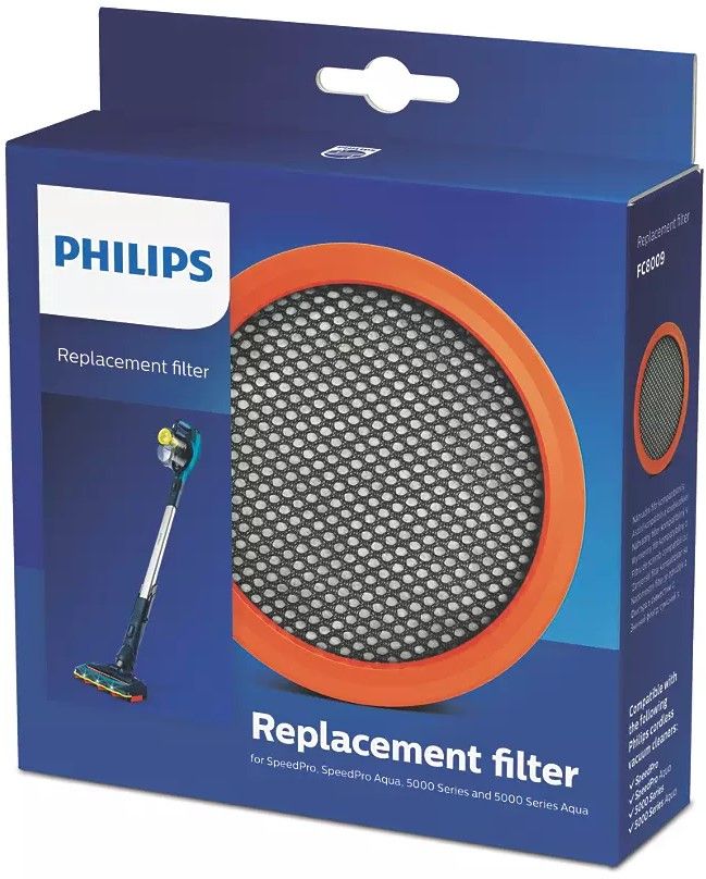 Wymienny filtr do modeli Philips SpeedPro i SpeedPro Aqua, serii 5000 i Aqua serii 5000. Opakowanie zawiera zmywalny filtr piankowy, który należy czyścić co dwa tygodnie oraz wymieniać co pół roku.