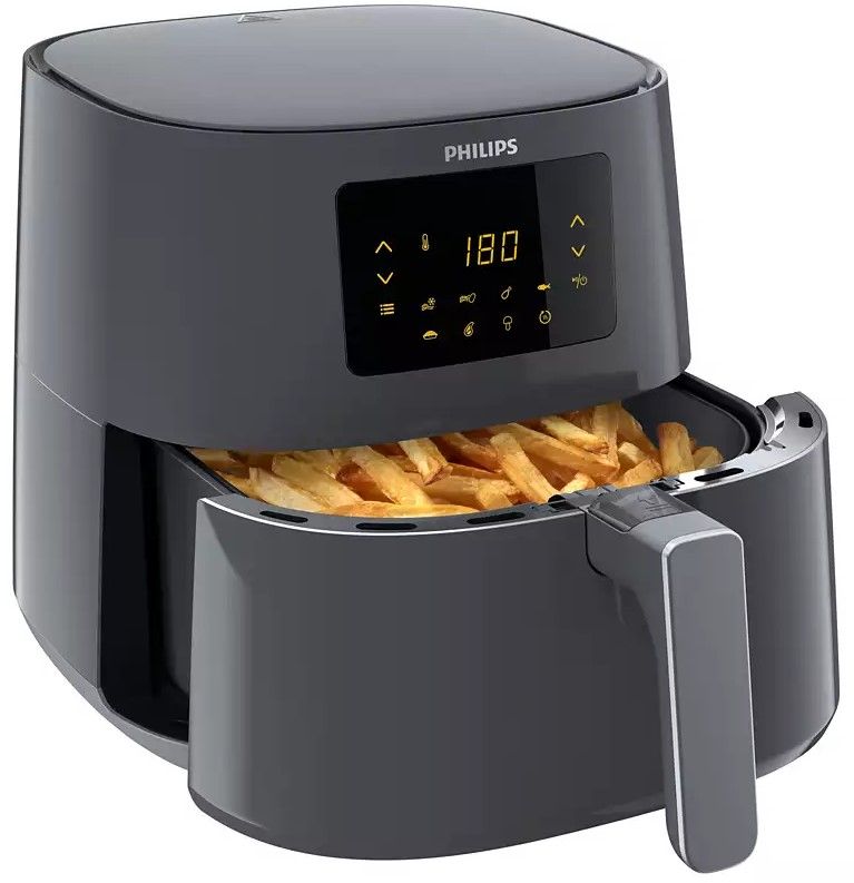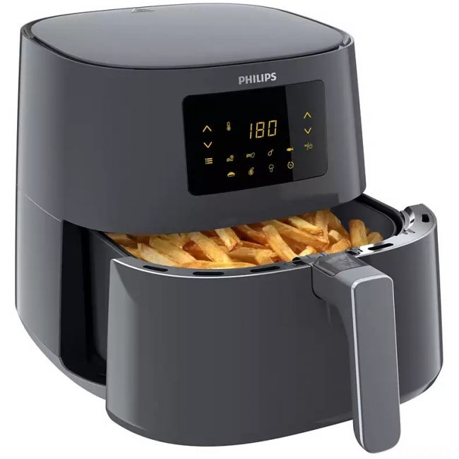 Urządzenie Philips Essential Airfryer wykorzystuje gorące powietrze, dzięki czemu ulubione potrawy są idealnie chrupiące i mają do 90% mniej tłuszczu*.