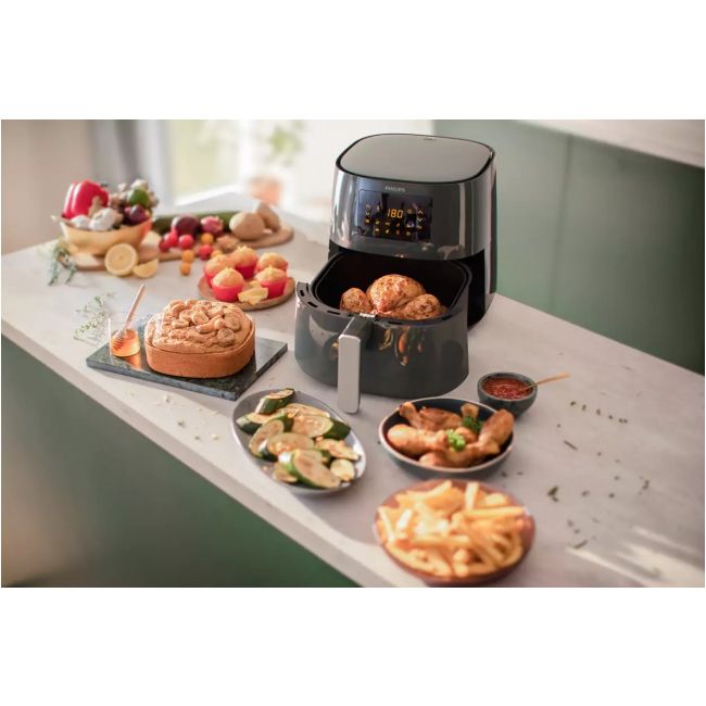 Frytownica Airfryer XL firmy Philips została zaprojektowana z myślą o Twojej rodzinie. Kosz o pojemności 1,2 kg w połączeniu z patelnią o pojemności 6,2 l ułatwia gotowanie różnych potraw. Za jednym razem można przygotować do 5 porcji dla rodziny i znajomych.