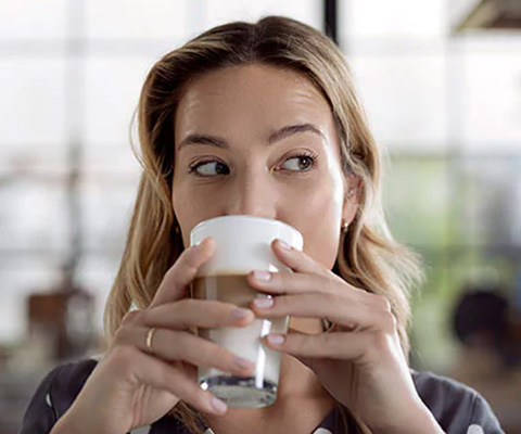 Aksamitnie gładka mleczna pianka oraz pyszny smak białej kawy, dzięki czystemu systemowi spieniania mleka.