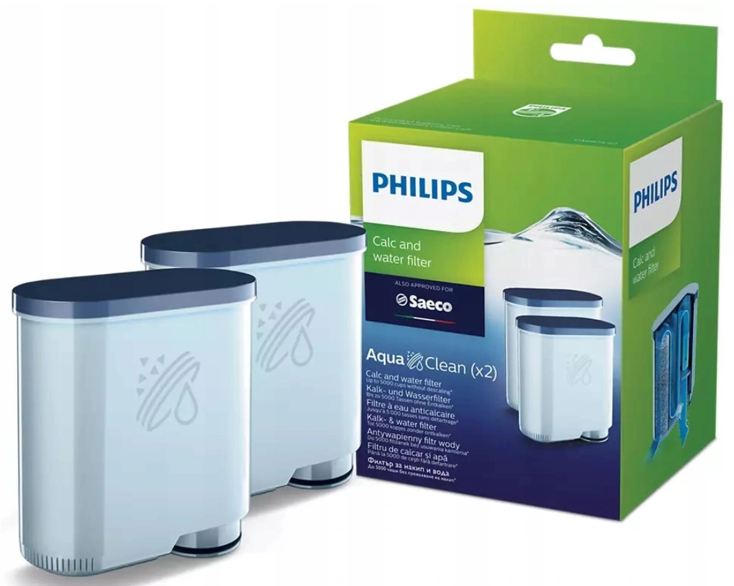 Innowacyjny filtr wody AquaClean ogranicza odkładanie się kamienia, dzięki czemu możesz delektować się smakiem świeżej kawy zaparzonej czystą wodą. Aby zapewnić maksymalną żywotność i bezpieczeństwo urządzeń Philips i Saeco, należy używać wyłącznie filtra wyłącznie filtrów do wody AquaClean Philips.