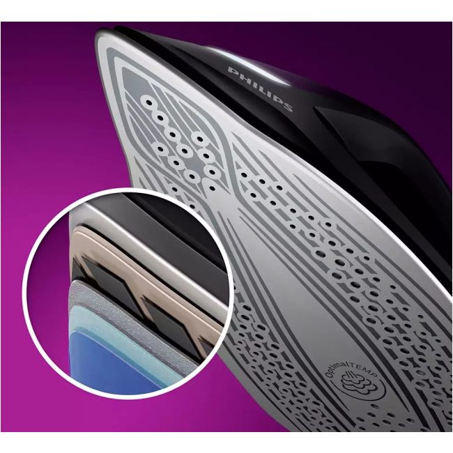 Zastosowanie technologii OptimalTEMP daje pewność, że żelazko nie przypali żadnej tkaniny. Możesz bez ryzyka pozostawić je na ubraniu lub desce do prasowania.