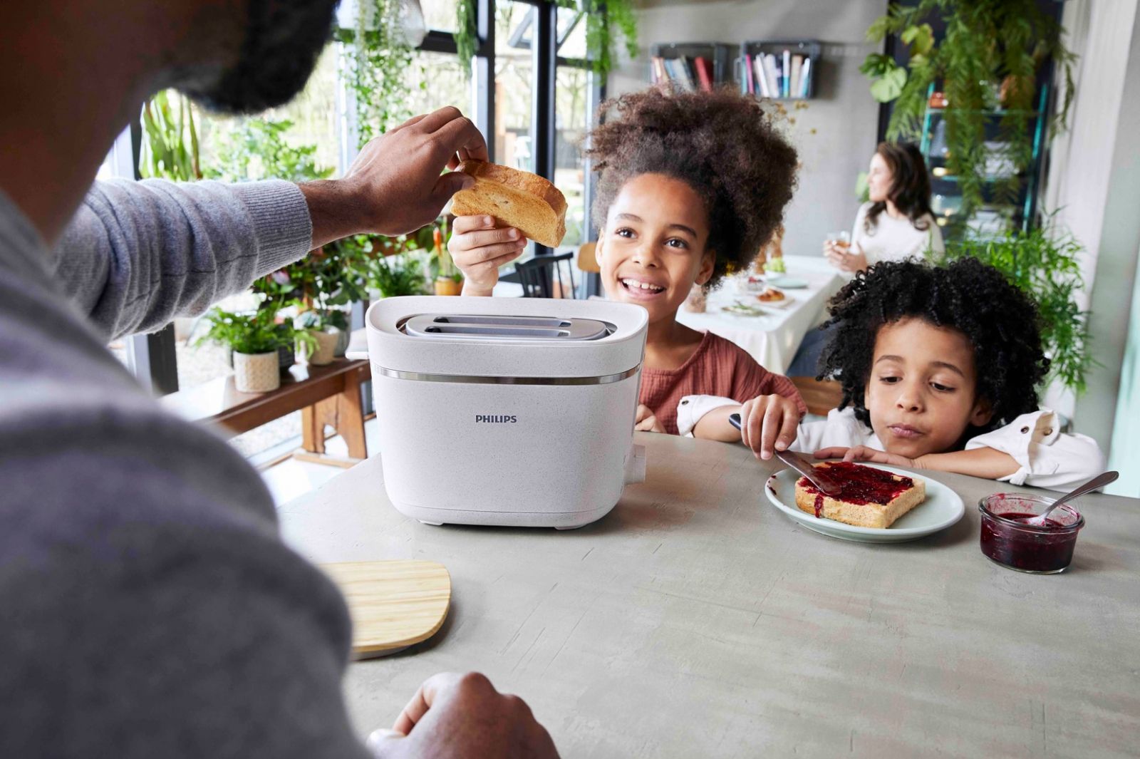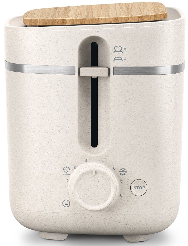 Konstrukcja inspirowana przez naturę charakteryzuje się łagodnymi kolorami i naturalnymi materiałami. Zawiera zdejmowaną pokrywę w stylowy drewniany wzór, która chroni toster przed kurzem w czasie, gdy nie jest używany. Kolekcja Philips Eco Conscious zdobyła nagrodę IF za wzornictwo oraz Red Dot in 2022 roku.