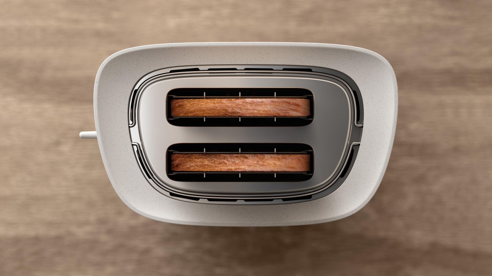 Do produkcji urządzenia wykorzystano 100% bioplastiku² pochodzącego z biologicznych i odnawialnych zasobów, np. oleju słonecznikowego. Zużyty olej, który pozostał po pieczeniu lub innych procesach produkcyjnych, jest zbierany i poddawany recyklingowi w ekologicznym procesie, który czyni go zdanym do kontaktu z żywnością. Toster został wyposażony w funkcję automatycznego wyłączania, zapewniającą dodatkowe bezpieczeństwo.