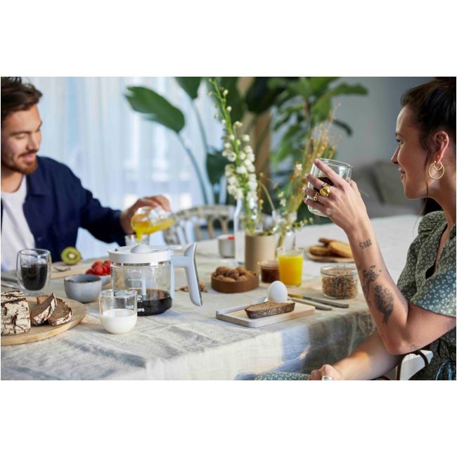- Wykonany całkowicie z bioplastiku - Funkcja oszczędzania energii - Tłoczek Aroma Twister pozwalający uzyskać wspaniały smak i bogaty aromat - Pozwala przygotować od 2 do 10 dużych lub 15 mniejszych filiżanek kawy - Zaparzenie całego dzbanka kawy trwa 10 minut - Długość przewodu: 0,8 m