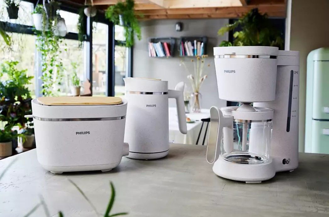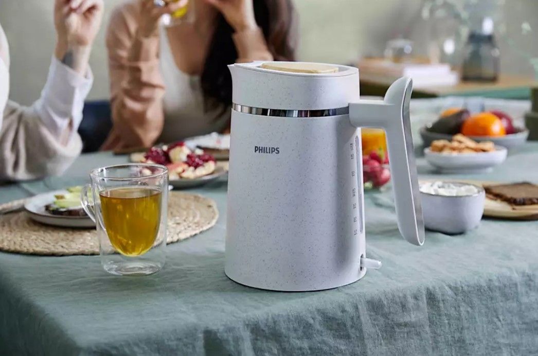 Konstrukcja inspirowana przez naturę charakteryzuje się łagodnymi kolorami i naturalnymi materiałami. Zawiera zdejmowaną pokrywę w stylowy drewniany wzór, która ułatwia napełnianie czajnika i czyszczenie. Kolekcja Philips Eco Conscious zdobyła nagrodę IF za wzornictwo oraz Red Dot in 2022 roku.