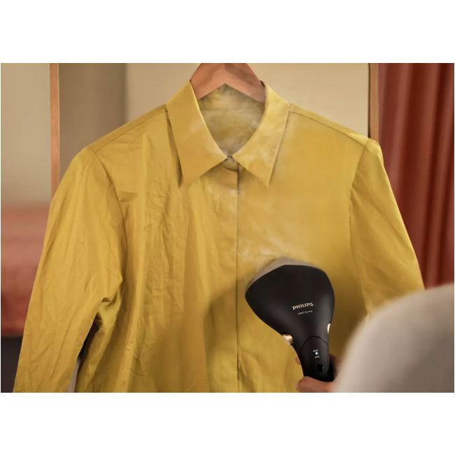 Teraz dzięki ręcznemu steamerowi Philips serii 7000 możesz w mgnieniu oka odświeżyć wszystkie swoje ubrania. Ruchoma głowica i ostro zakończona płyta parowa szybko i łatwo usuwają zagniecenia pod dowolnym kątem, a technologia OptimalTemp zapewnia brak przypaleń.