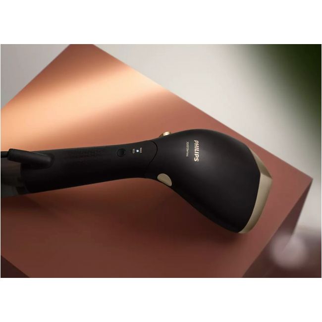 Seria 7000 ma małe wymiary, dzięki czemu możesz zabrać swój steamer ze sobą, aby odświeżyć ubrania, gdy będę tego potrzebowały — bez rozkładania deski do prasowania.