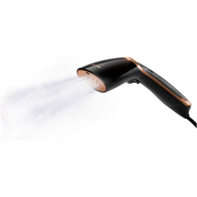 Dokładnie wygładza zagniecenia. Wyrzut pary do 24 g/min.