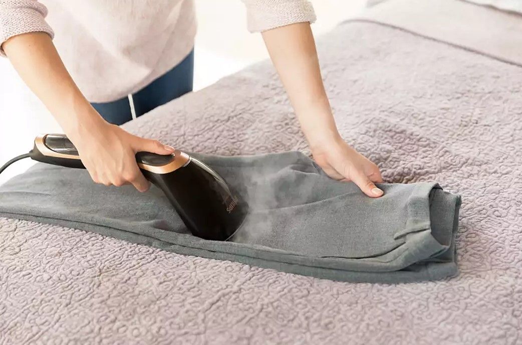 Parownicy Philips można używać do ubrań wiszących na wieszaku np. na drzwiach lub szafie. Jeśli nie masz miejsca, by je wygodnie powiesić, ubranie rozłóż na łóżku lub kanapie.